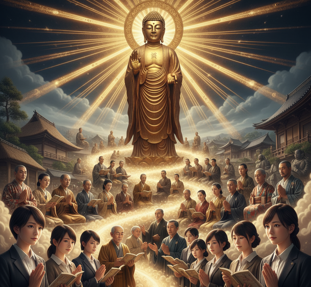 「浄土真宗……往生浄土を説く真実の教え。真実の教である『大無量寿経』に説かれた阿弥陀仏の選択本願を指し、具体的には弘願他力の念仏成仏の教えをいう」