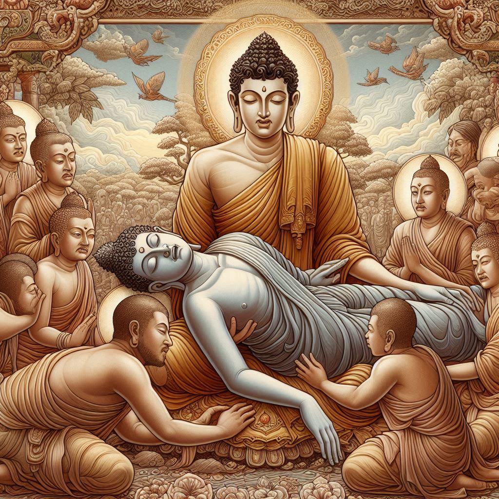 ※下の画像は生成AIが考えた「入滅された釈迦如来」です。