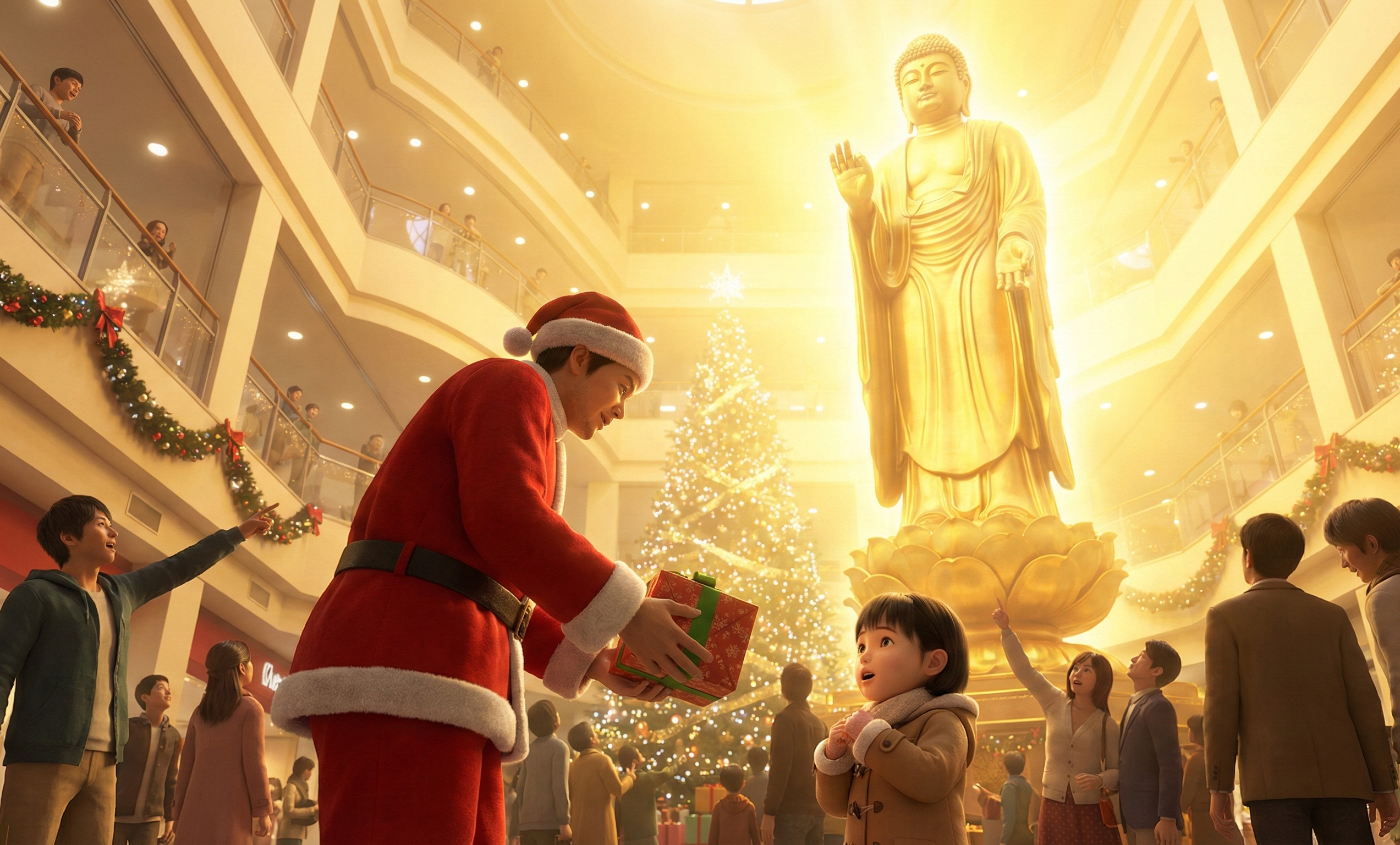 ※上の画像は生成AIが考えた-「プレゼントをくれるサンタクロースと後生を解決する阿弥陀仏」-です