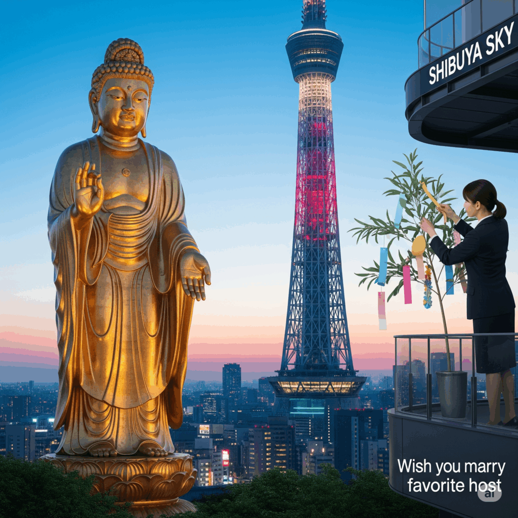 ※上の画像は生成AIが考えた「自らの煩悩のままの願いを七夕にかける人とその人を救おうと願いをかける阿弥陀如来」です。