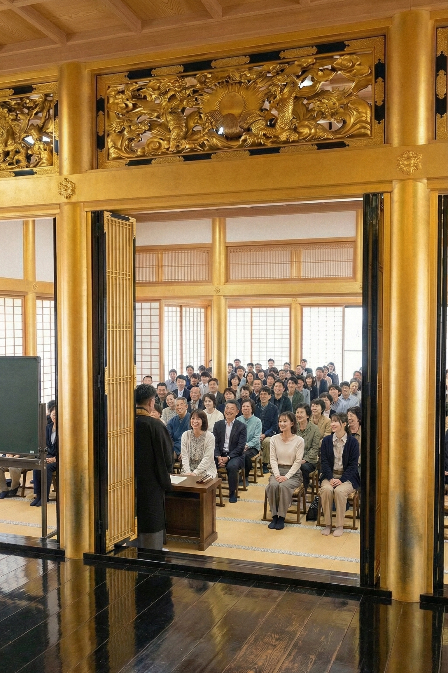 ※上の画像は生成AIが考えた-「本堂で春季彼岸会の法話をお聴聞している様子」-です。