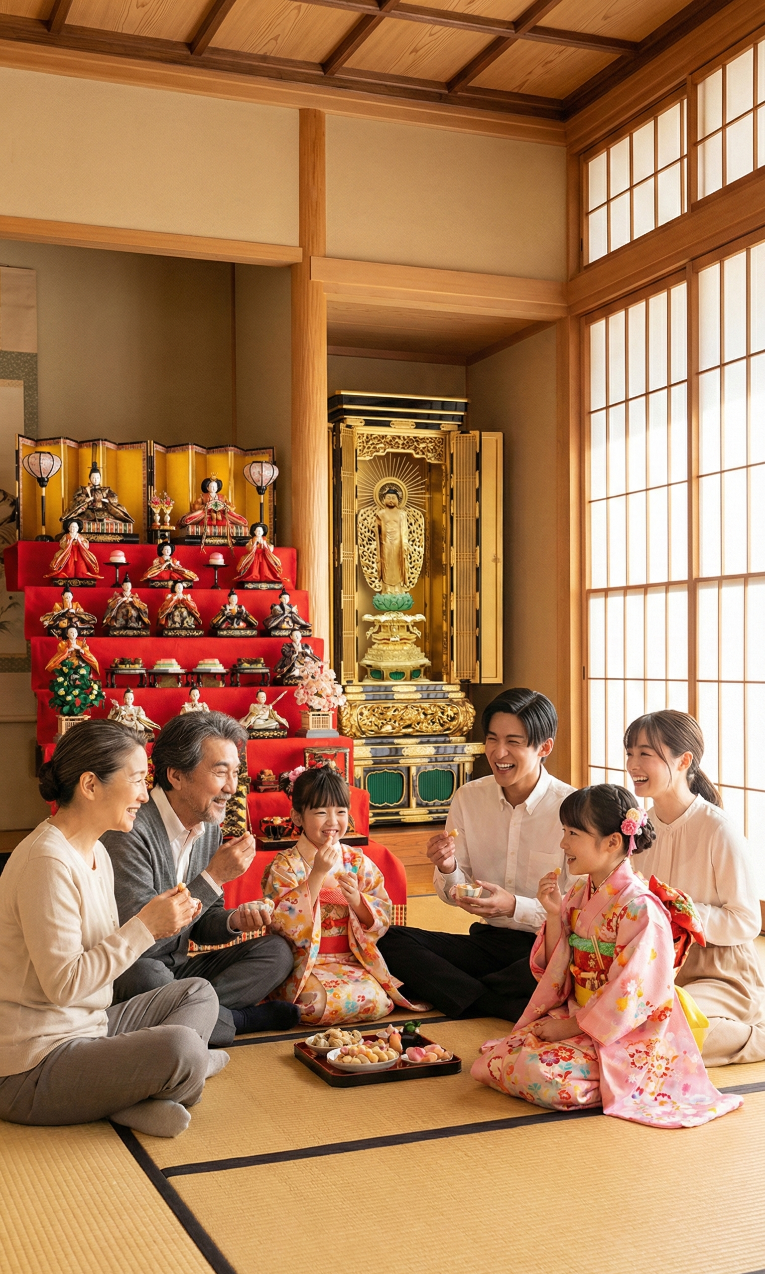 ※上の画像は生成AIが考えた-「ひな祭りに子供の幸せを願う家族とひとりひとりの後生を願う阿弥陀如来」-です