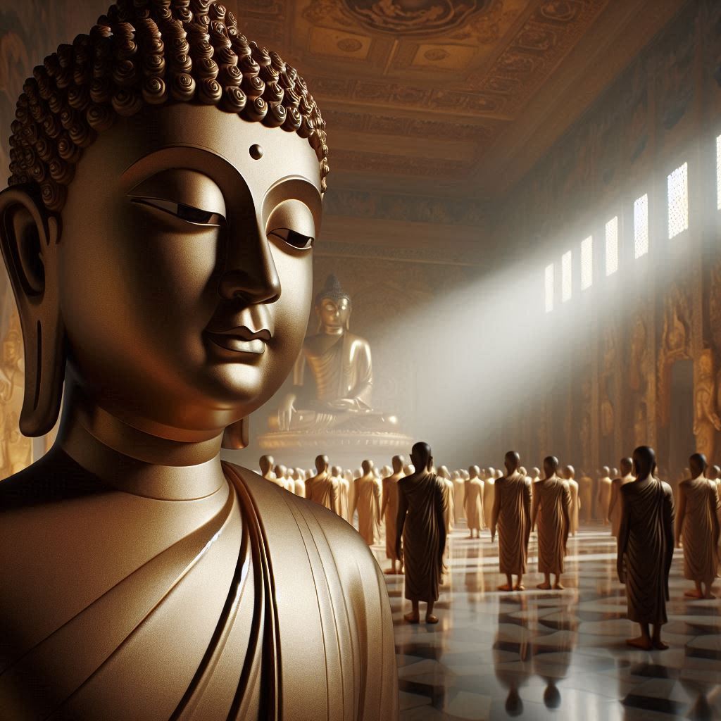 以下の画像は、画像生成AIが考えた、「あらゆる人を平等に一人の自らの子供のように見ている阿弥陀仏の姿」です。