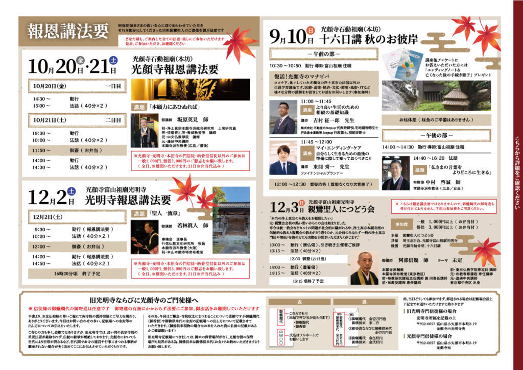 富山祖廟 12/2報恩講法要・12/3親鸞聖人に集う会のご案内