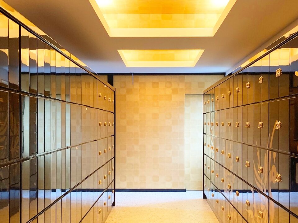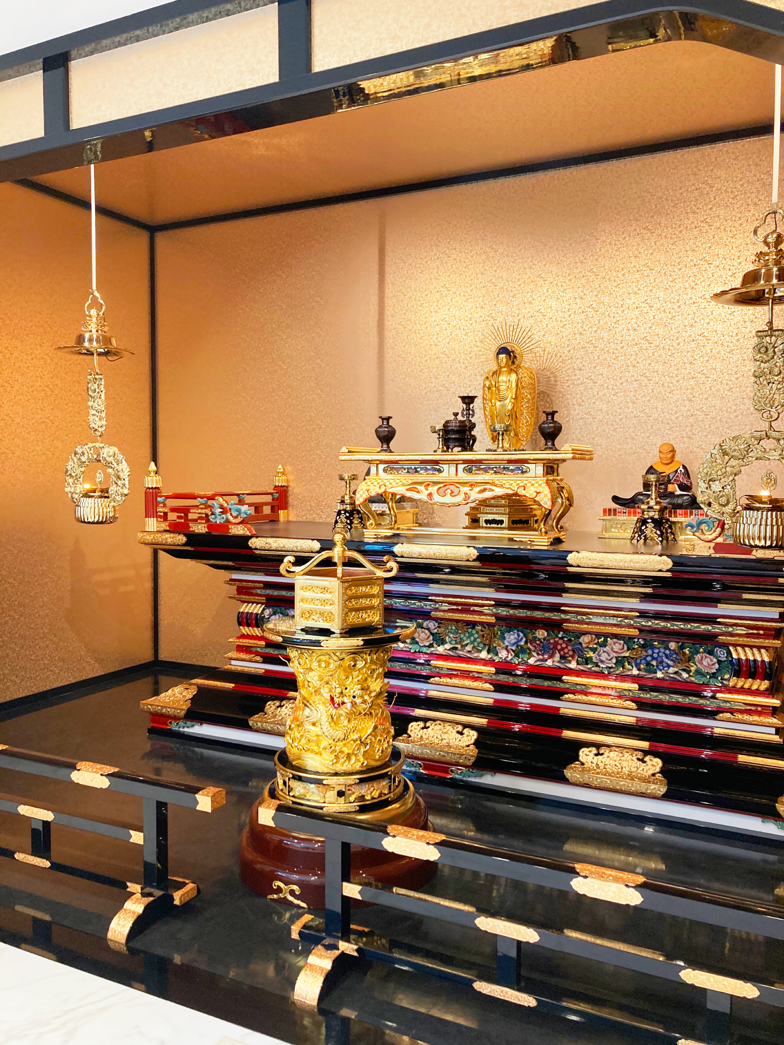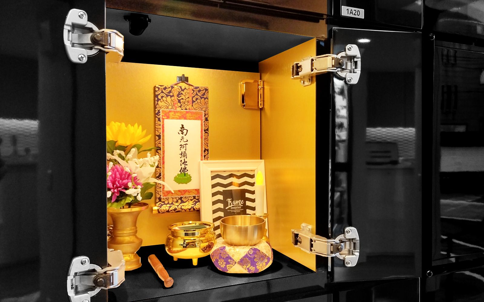 仏壇型の納骨壇、奥にお骨壺(お骨箱)を収蔵