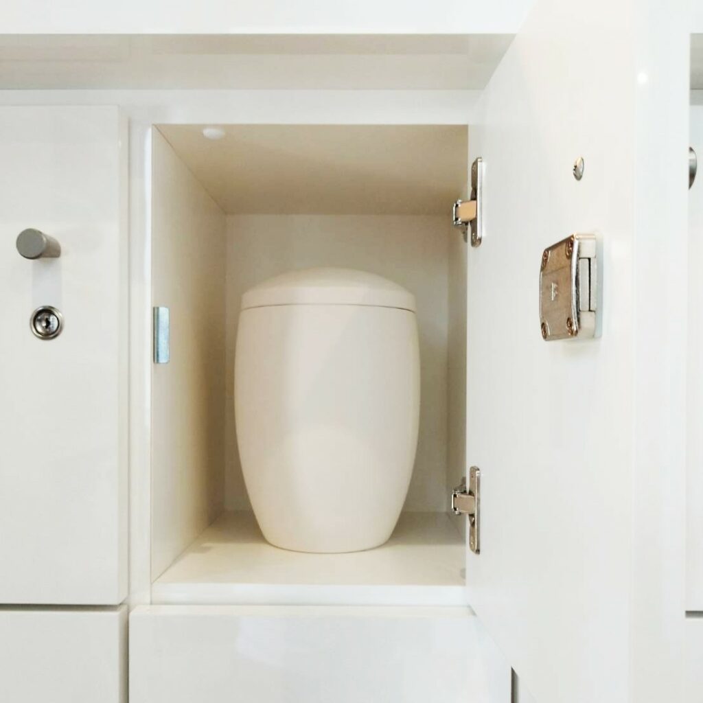 仏壇型の納骨壇、奥にお骨壺(お骨箱)を収蔵